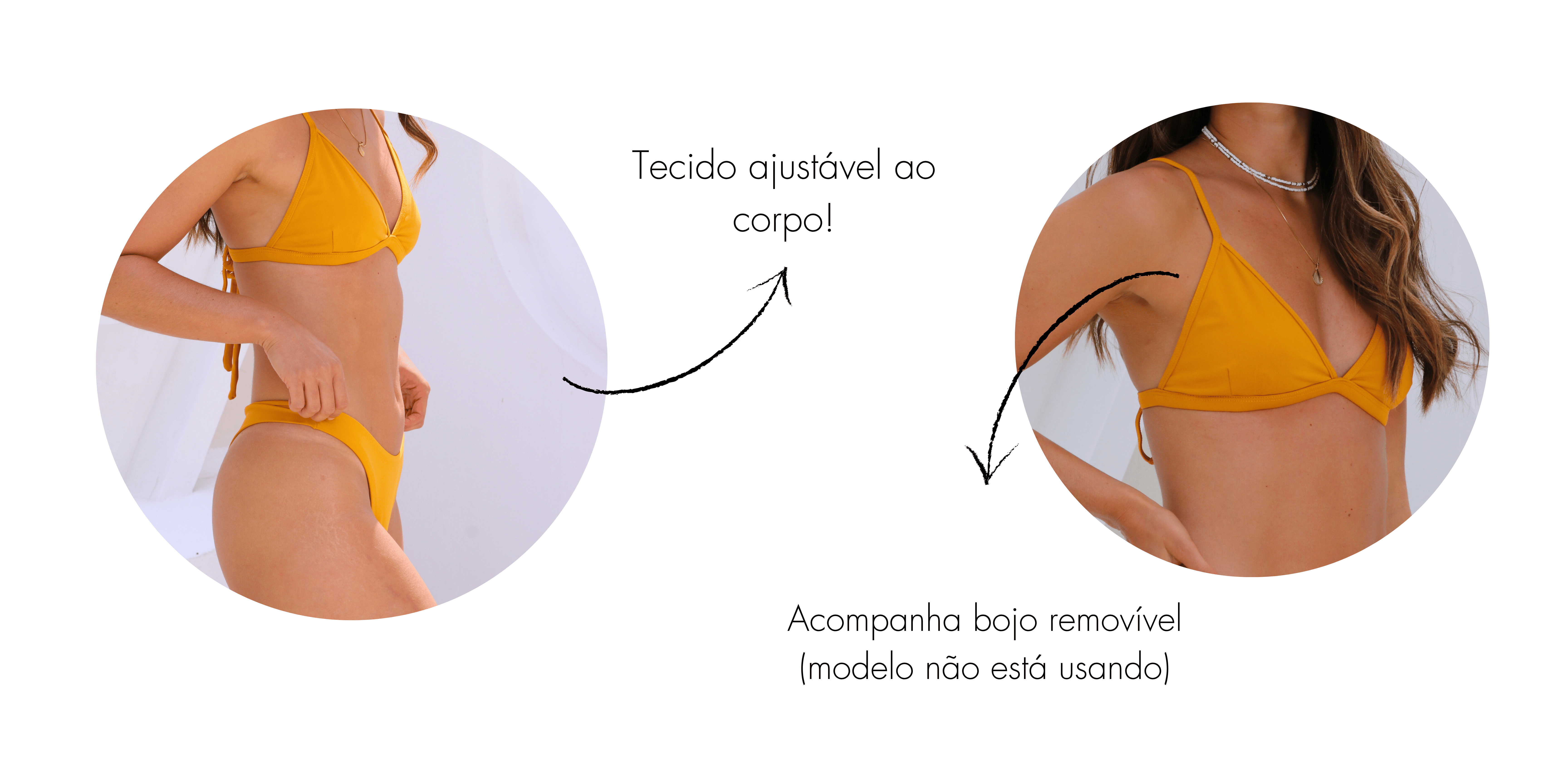 Sempre secar à sombra (evitar secar no box do banheiro, pois pode causar mofo e manchas no biquíni).