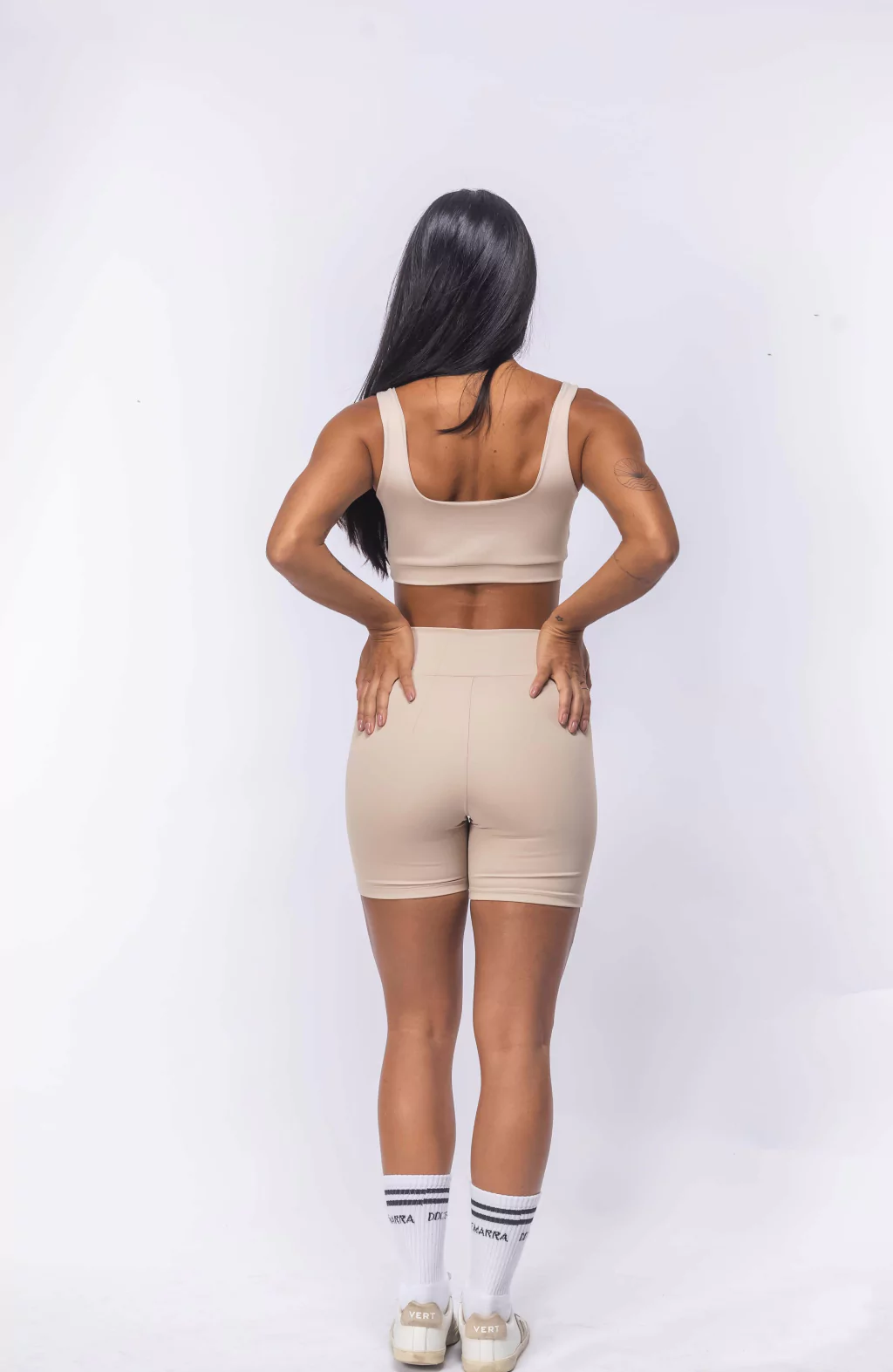 Este é o Short Ágata, um short de ginástica feminino na cor marrom terra. Com design de cintura alta, proporciona maior suporte e modelagem ao corpo, sendo ideal para uma variedade de atividades físicas, como musculação, corrida ou yoga. Feito de tecido elástico e respirável, oferece conforto e liberdade de movimento durante os exercícios. O comprimento médio garante cobertura adequada, enquanto o ajuste justo evita que o short se desloque durante o uso. Além disso, o Short Ágata é forrado, oferecendo maior conforto e segurança. Ele também possui um bolso prático, perfeito para guardar pequenos itens essenciais durante o treino. O tecido de secagem rápida ajuda a manter a pele seca e confortável durante os treinos.
